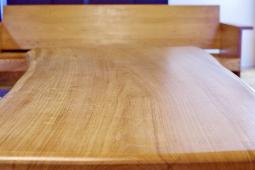 一枚板は継ぎ目がなく、木目が途切れません。その連続した木目が視覚的な美しさと重厚感を生み出します。