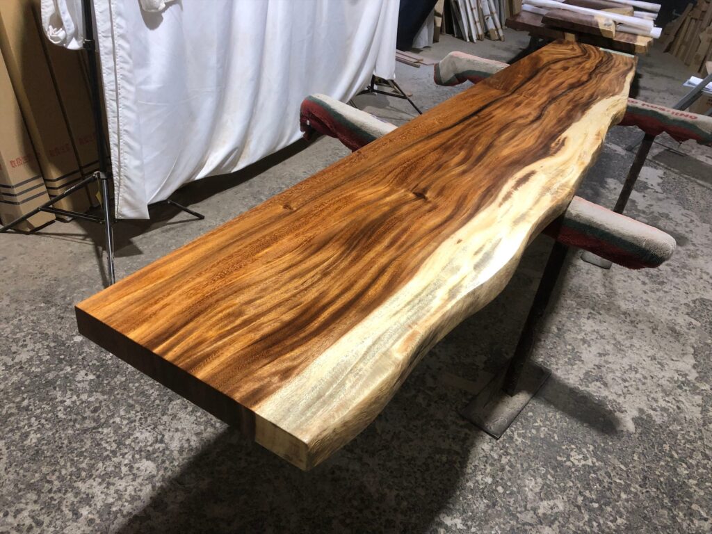 一枚板の魅力のひとつが「耳」と呼ばれる自然な曲線部分です。