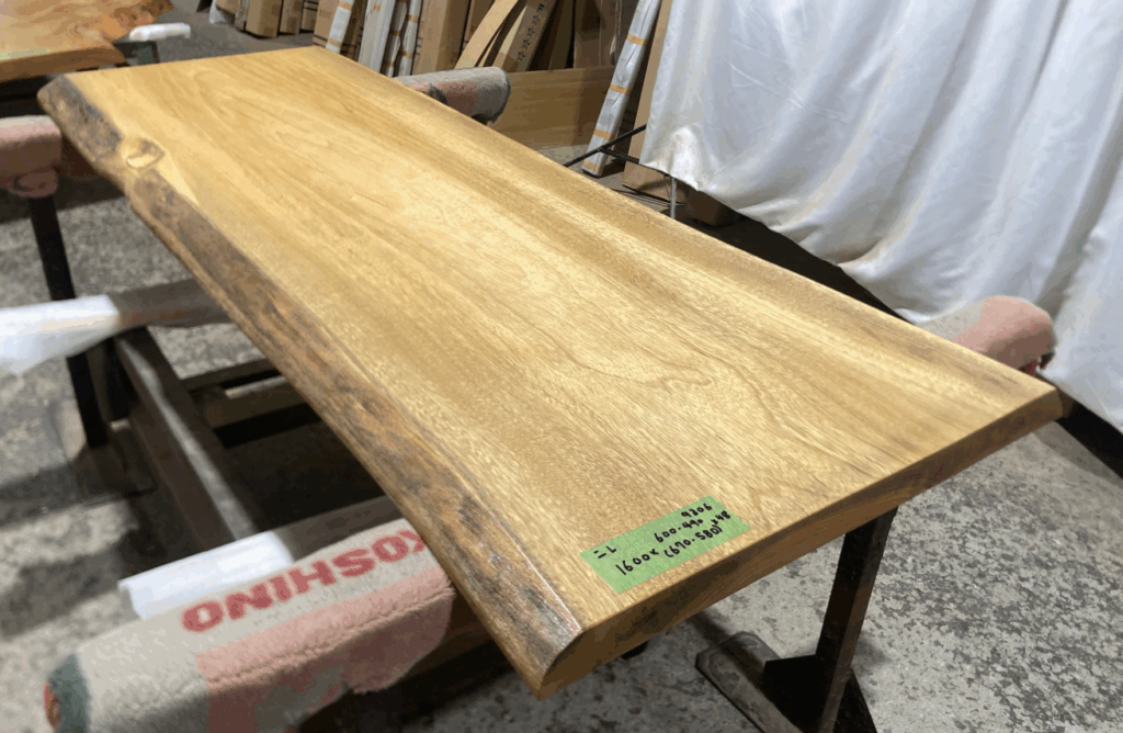 トチは日本の森で育った国産材で、明るくやさしい色合いと、美しい縮み杢が魅力です。光の角度によってキラキラと表情が変わり、空間に柔らかな印象を与えてくれます。セカンドライフでは「空間を明るく見せたい」「圧迫感を抑えたい」という要望も多く、そうしたニーズにぴったりの樹種。和洋どちらの空間にもなじみやすく、穏やかな美しさを大切にしたい方に向いています。国産材ならではの安心感もあり、長く付き合える一枚板です。