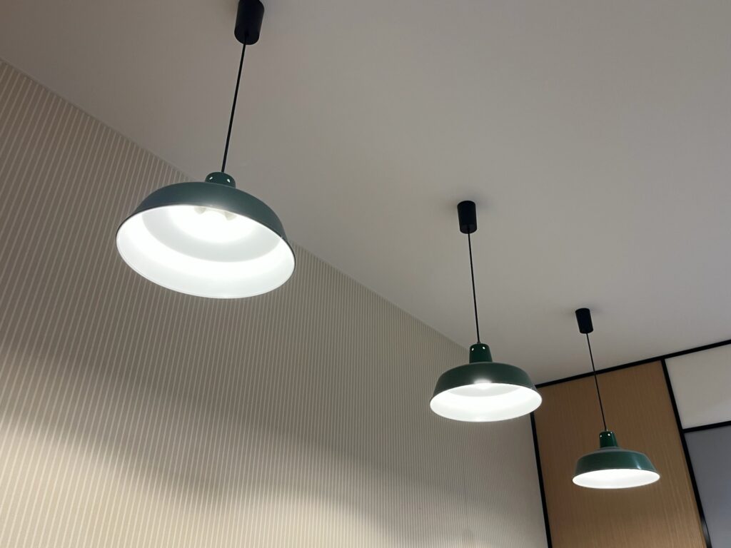 また、ペンダントライトの「本数」も重要です。幅160cm以上のダイニングテーブルなら、1灯では暗くなりがちなので 2〜3灯 の複数配置がバランスよく見えます。無垢材の木目をより立体的に見せたいなら、複数灯を使って光を分散させるのが効果的です。