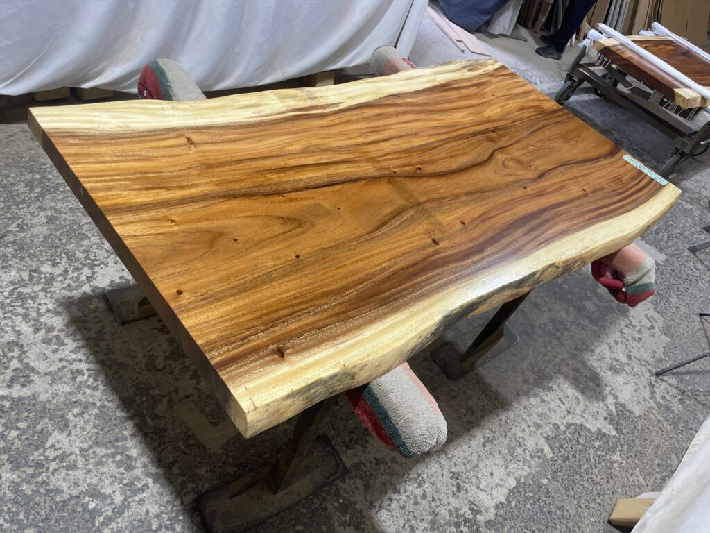 一枚板の最大の特徴は、同じものが二つと存在しない点です。木目、色味、節、割れ、すべてが自然によって生み出された一点ものです。