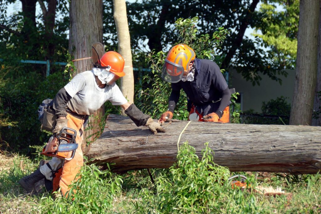 自然との調和を守りながら木を伐る。